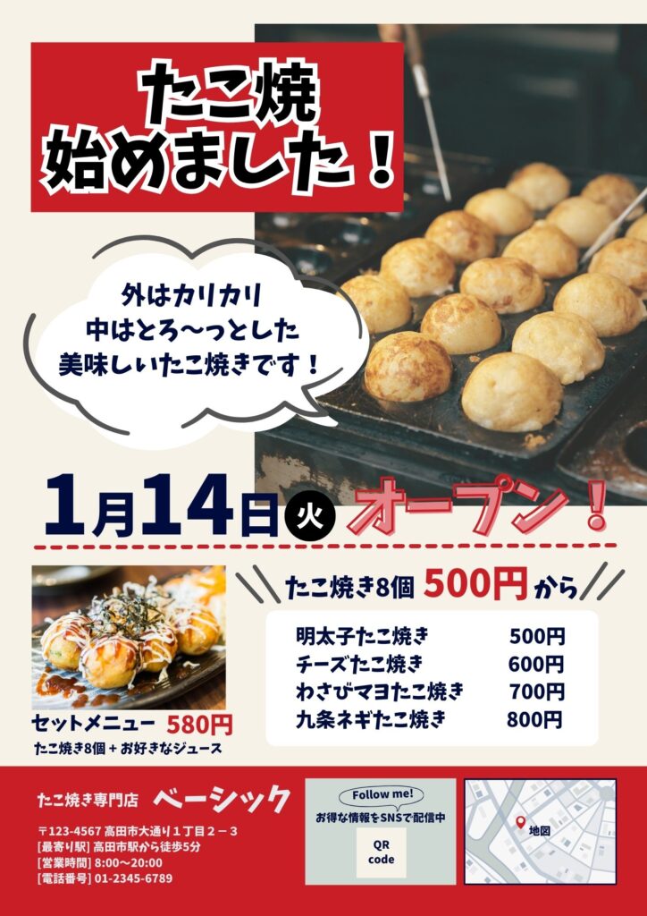ポスター・チラシ:イベント告知やお店の宣伝に使える、目を引くデザインを作成できます。